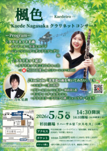 クラリネット吹き長坂楓のホームページをお訪ね下さいましてありがとうございます。この度フランスから帰国致しまして、レッスンとYouTubeを始めました! クラリネット・音楽が好き!という方がもっともっと増えますように…♪