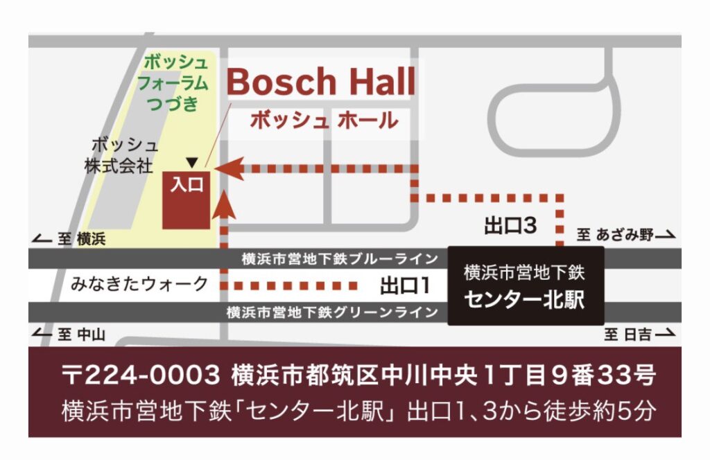 横浜市営地下鉄「センター北駅」出口1、3から徒歩約5分